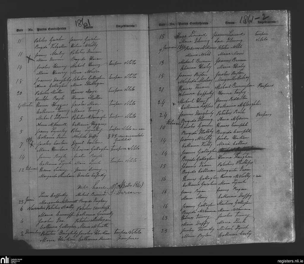 Kilbeagh; County of Mayo; Diocese of Achonry. Marriages, Feb. 1861 to Feb. 1862