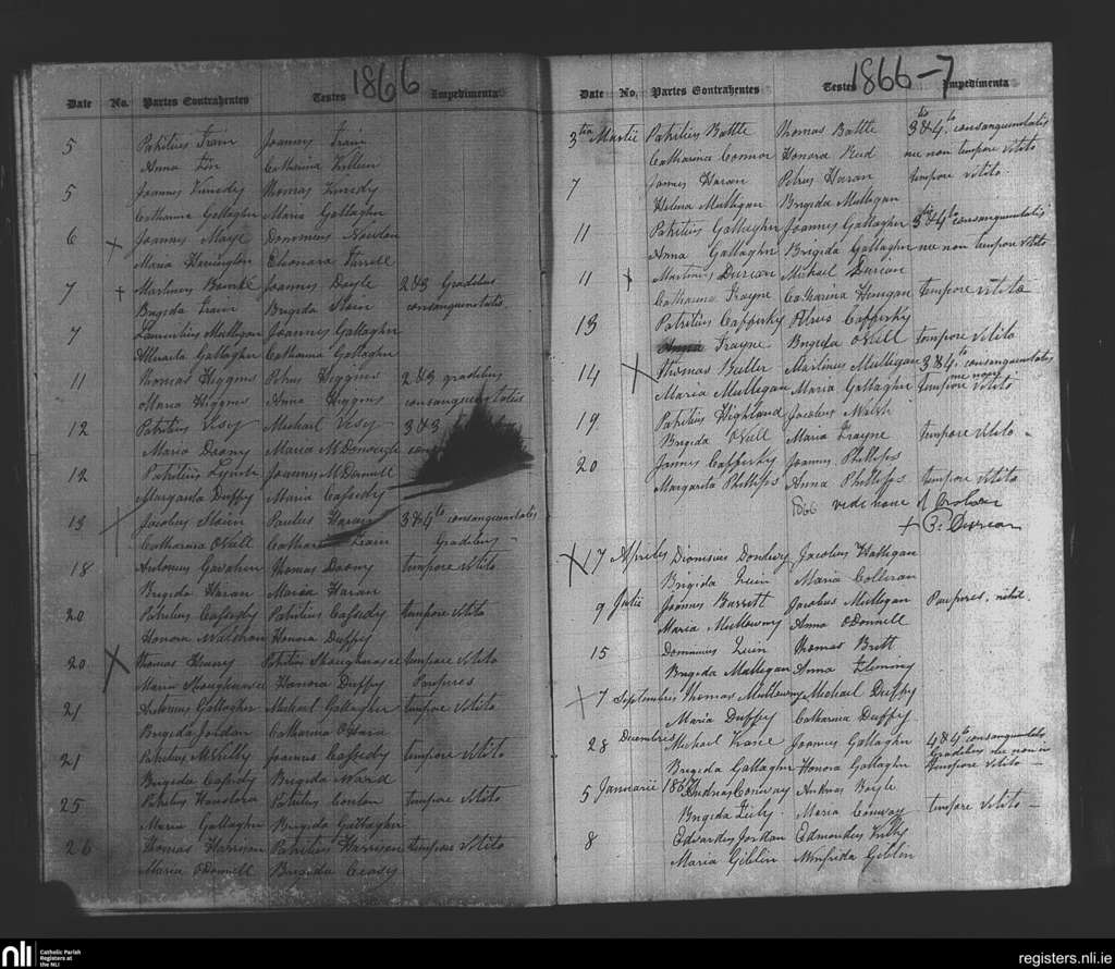 Kilbeagh; County of Mayo; Diocese of Achonry. Marriages, Feb. 1866 to Jan. 1867