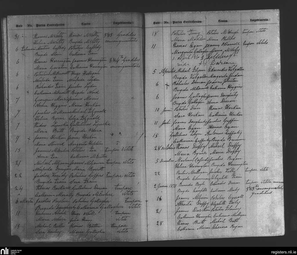 Kilbeagh; County of Mayo; Diocese of Achonry. Marriages, Jan. 1869 to Jan. 1870