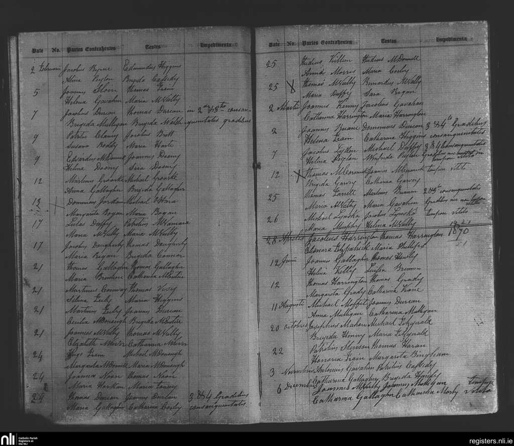 Kilbeagh; County of Mayo; Diocese of Achonry. Marriages, Feb. 1870 to Dec. 1870