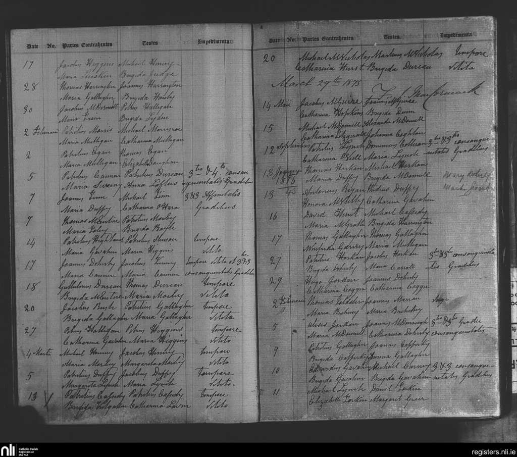 Kilbeagh; County of Mayo; Diocese of Achonry. Marriages, Jan. 1875 to Feb. 1876