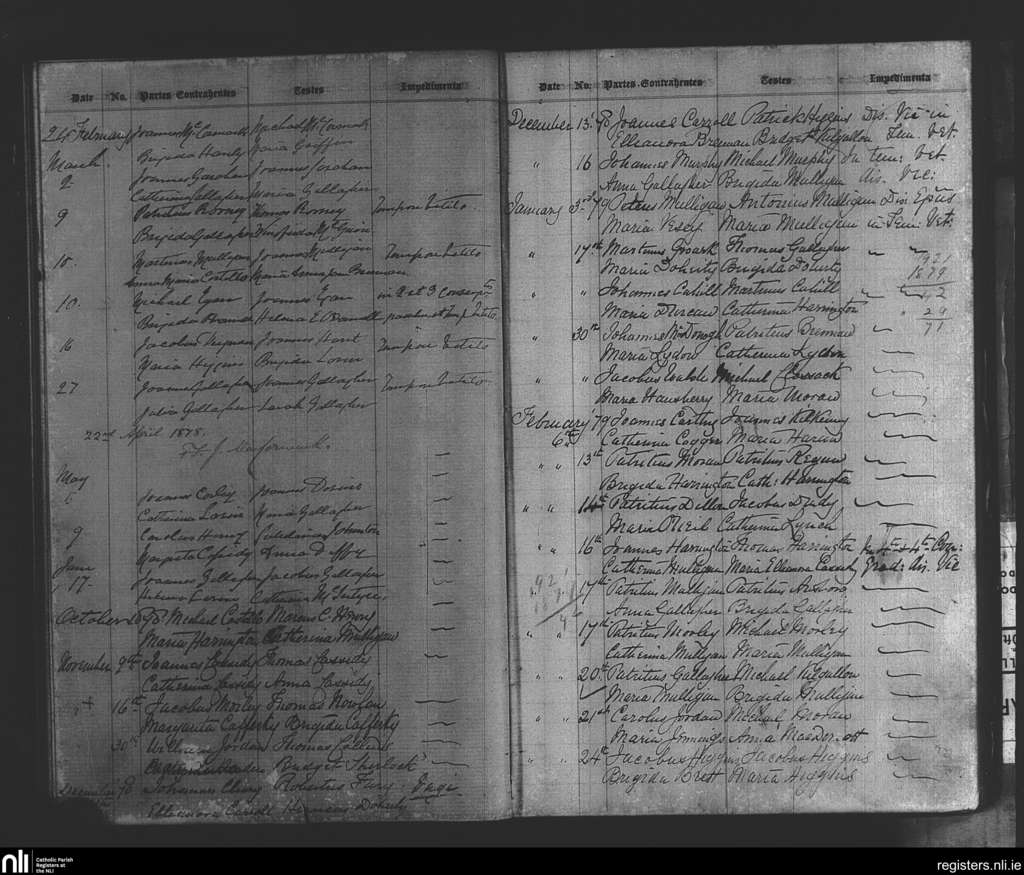 Kilbeagh; County of Mayo; Diocese of Achonry. Marriages, Feb. 1878 to Feb. 1879