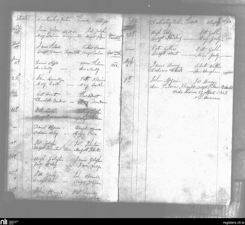 Cloonacool; County of Sligo; Diocese of Achonry. Marriages, Nov. 1861 to Mar. 1862