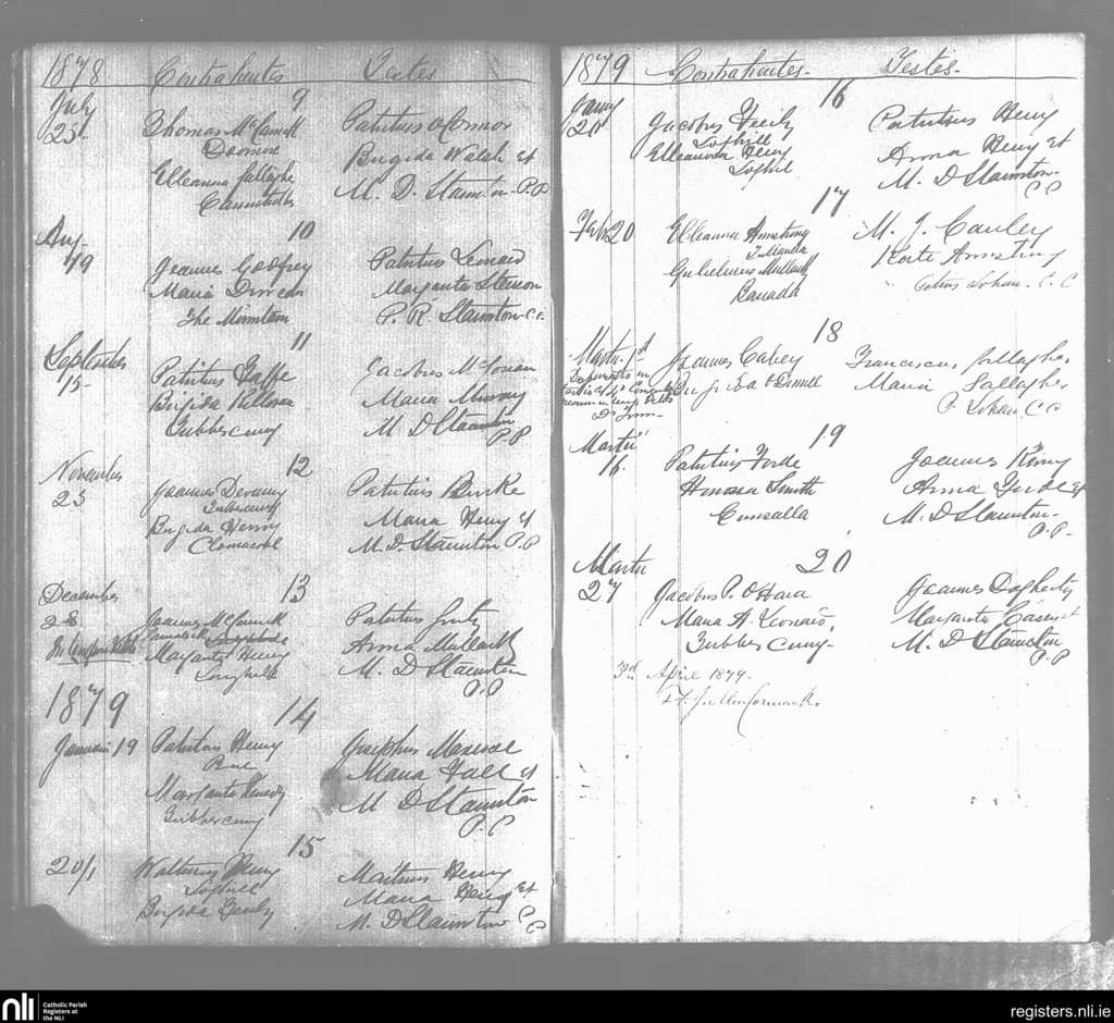 Cloonacool; County of Sligo; Diocese of Achonry. Marriages, July 1878 to Mar. 1879