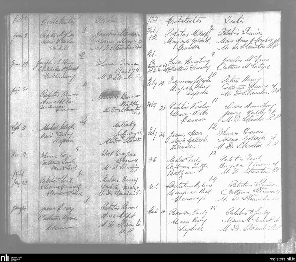 Cloonacool; County of Sligo; Diocese of Achonry. Marriages, June 1880 to Mar. 1881