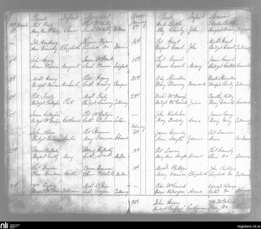 Cloonacool; County of Sligo; Diocese of Achonry. Baptisms, Dec. 1859 to Feb. 1860