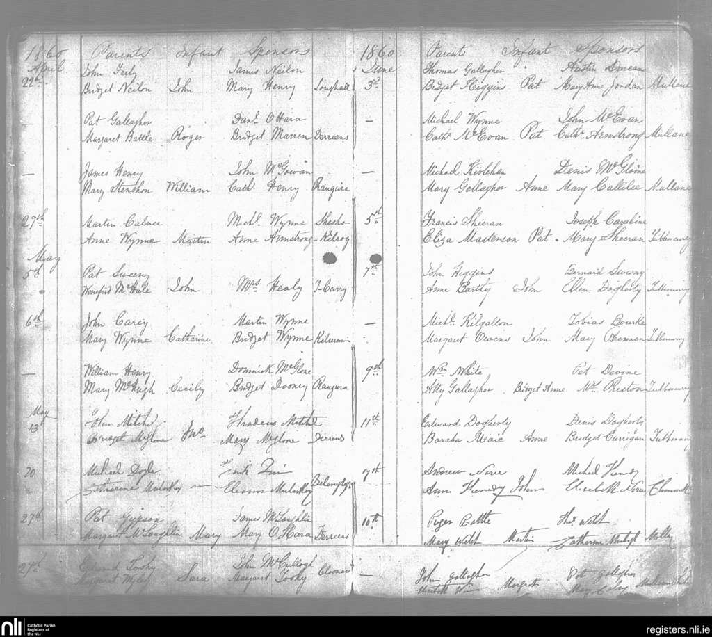 Cloonacool; County of Sligo; Diocese of Achonry. Baptisms, Apr. 1860 to June 1860