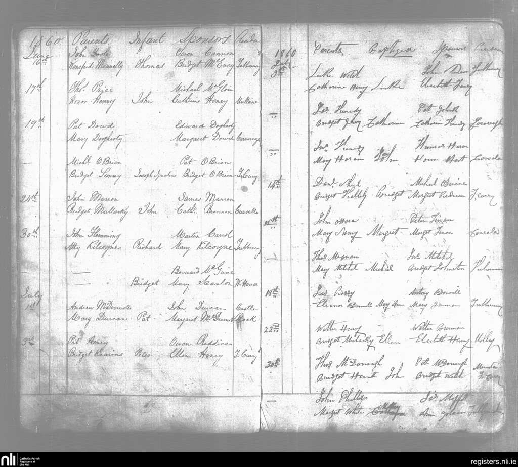 Cloonacool; County of Sligo; Diocese of Achonry. Baptisms, June 1860 to July 1860