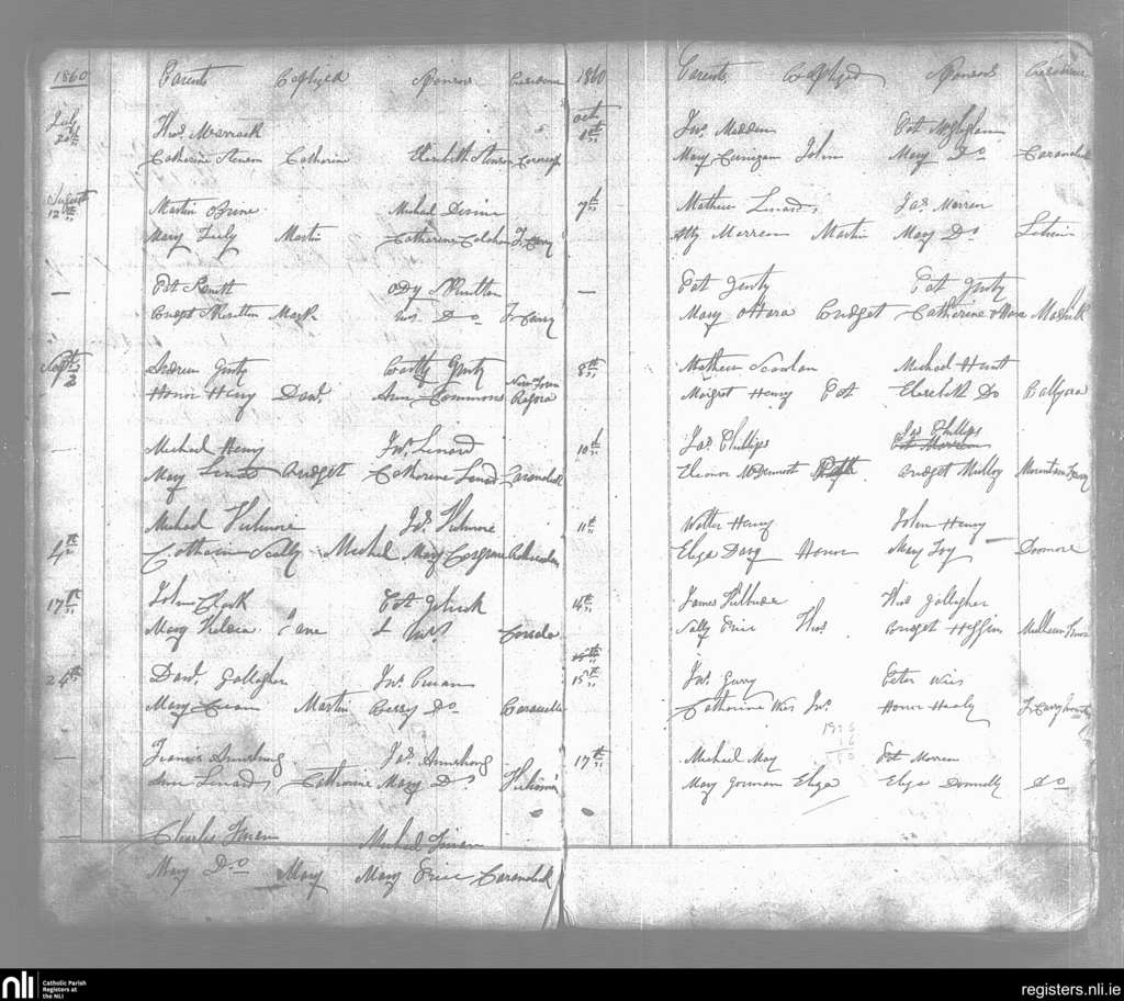 Cloonacool; County of Sligo; Diocese of Achonry. Baptisms, July 1860 to Oct. 1860