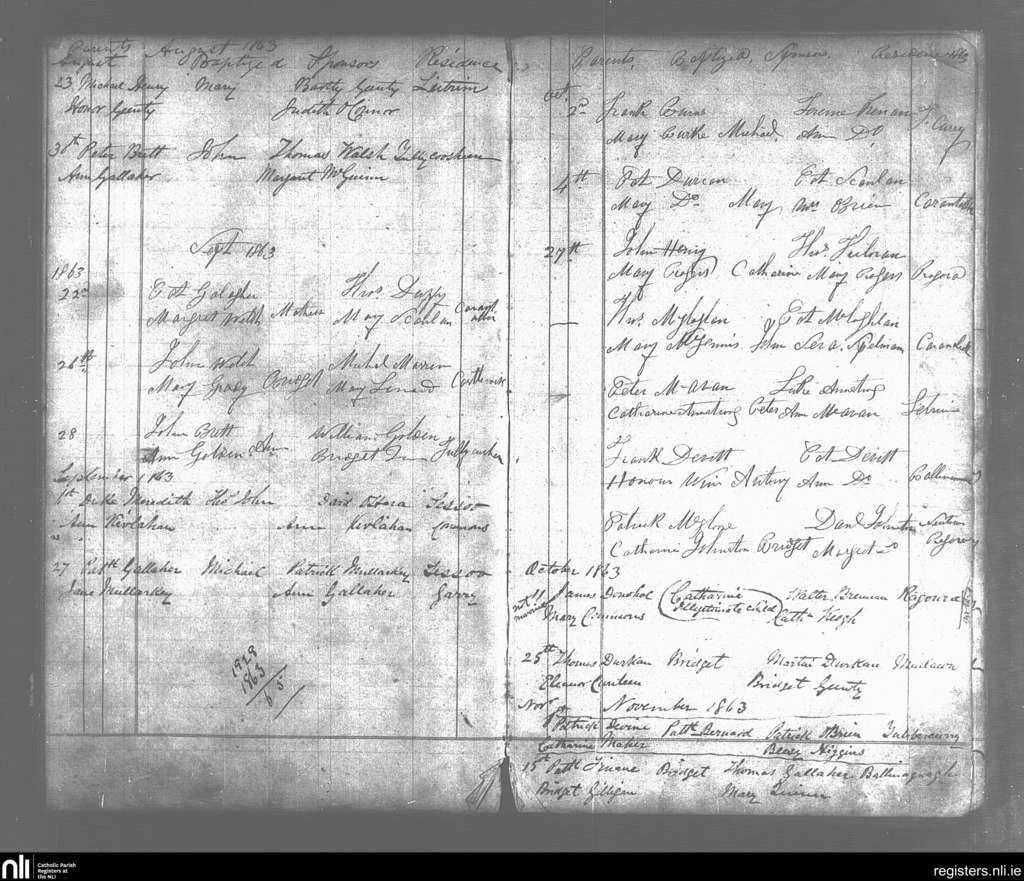 Cloonacool; County of Sligo; Diocese of Achonry. Baptisms, Aug. 1863 to Nov. 1863