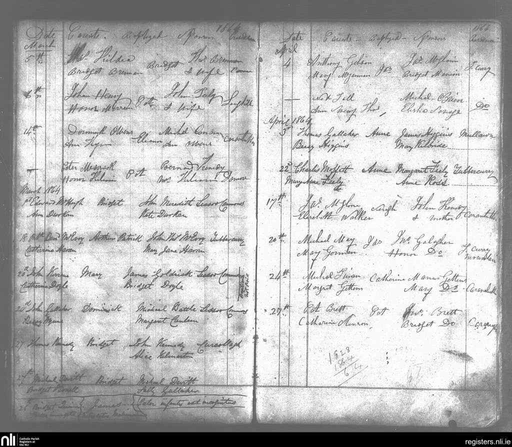 Cloonacool; County of Sligo; Diocese of Achonry. Baptisms, Mar. 1864 to Apr. 1864