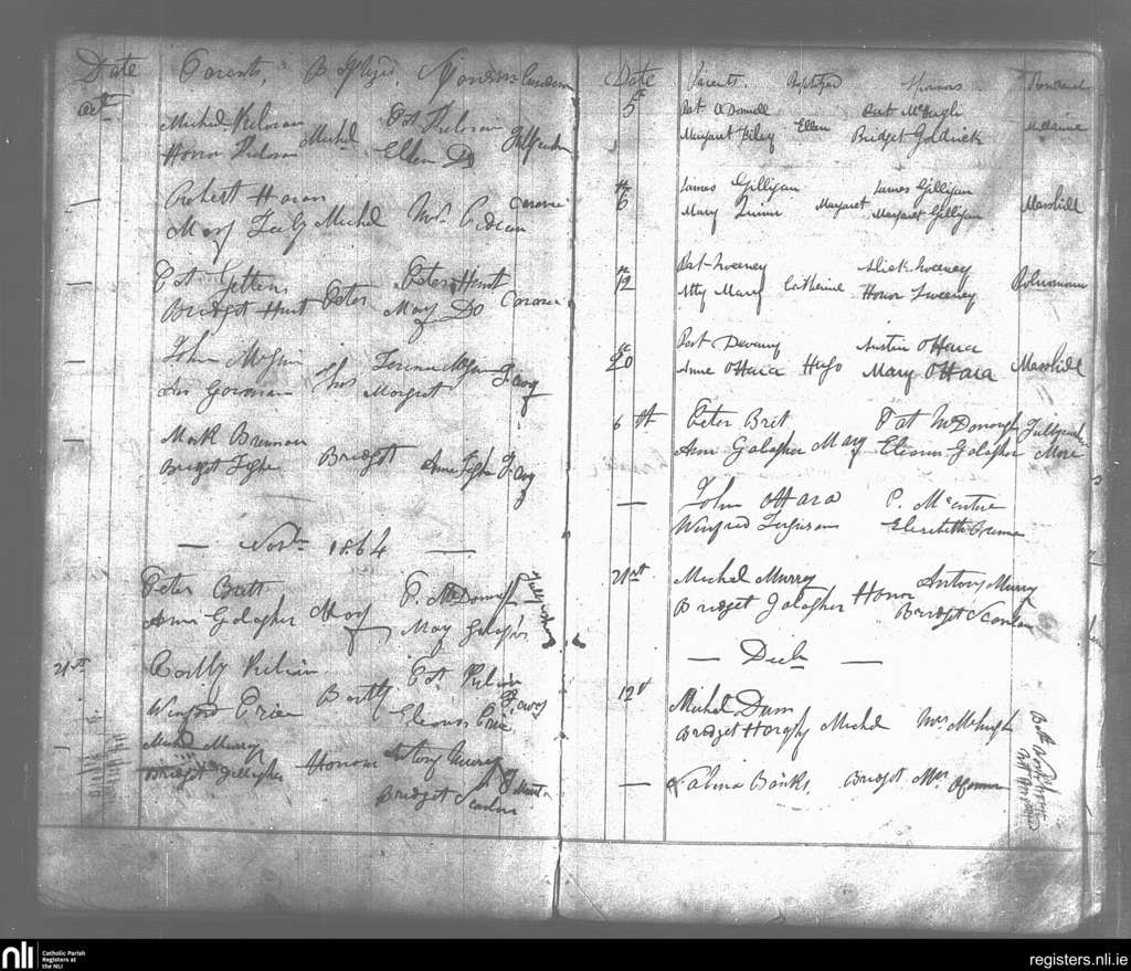 Cloonacool; County of Sligo; Diocese of Achonry. Baptisms, Oct. 1864 to Dec. 1864