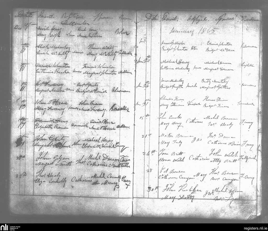 Cloonacool; County of Sligo; Diocese of Achonry. Baptisms, Dec. 1864 to Jan. 1865