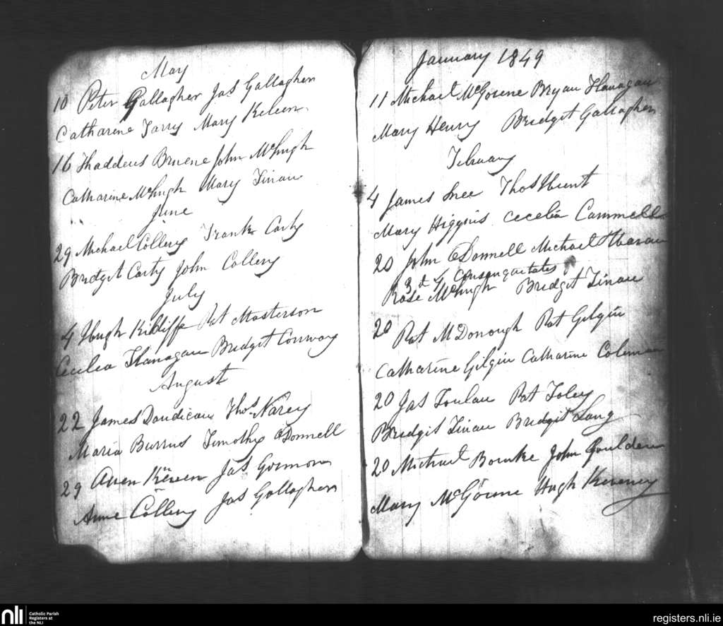 Killoran; County of Sligo; Diocese of Achonry. Marriages, May 1848 to Feb. 1849
