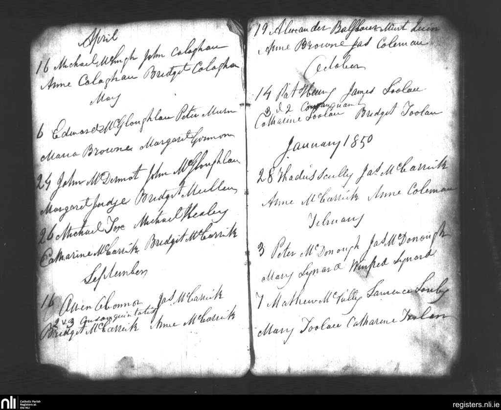 Killoran; County of Sligo; Diocese of Achonry. Marriages, Apr. 1849 to Feb. 1850
