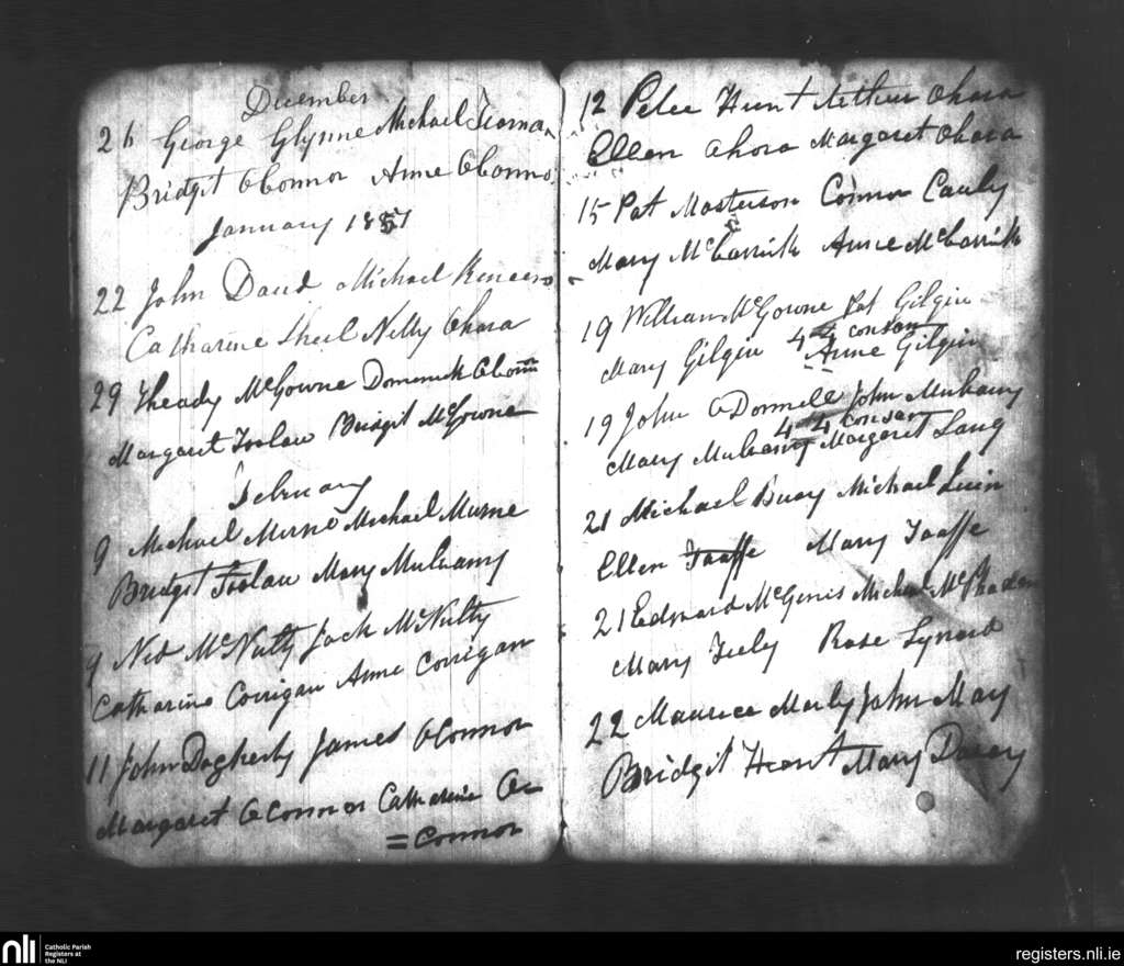 Killoran; County of Sligo; Diocese of Achonry. Marriages, Dec. 1856 to Feb. 1857