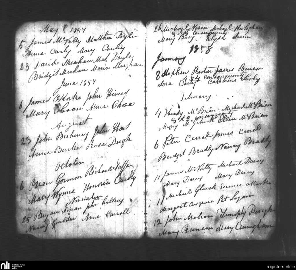 Killoran; County of Sligo; Diocese of Achonry. Marriages, May 1857 to Feb. 1858