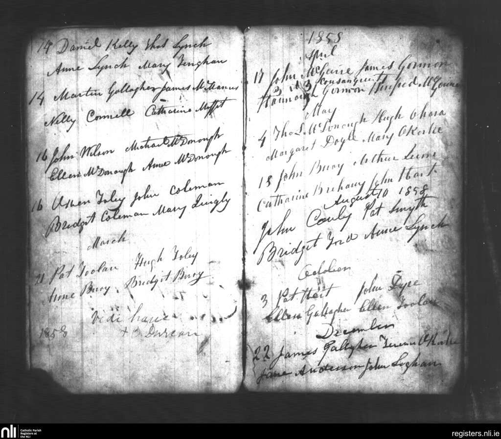 Killoran; County of Sligo; Diocese of Achonry. Marriages, Feb. 1858 to Dec. 1858