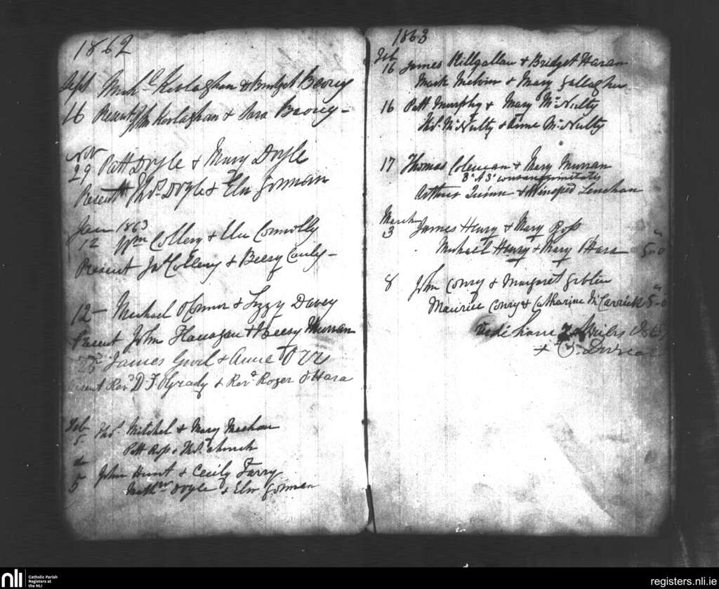 Killoran; County of Sligo; Diocese of Achonry. Marriages, Sep. 1862 to Mar. 1863