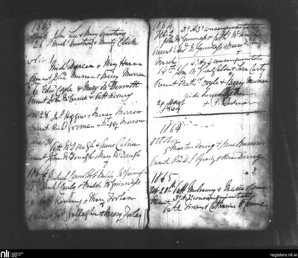 Killoran; County of Sligo; Diocese of Achonry. Marriages, Apr. 1863 to Feb. 1865