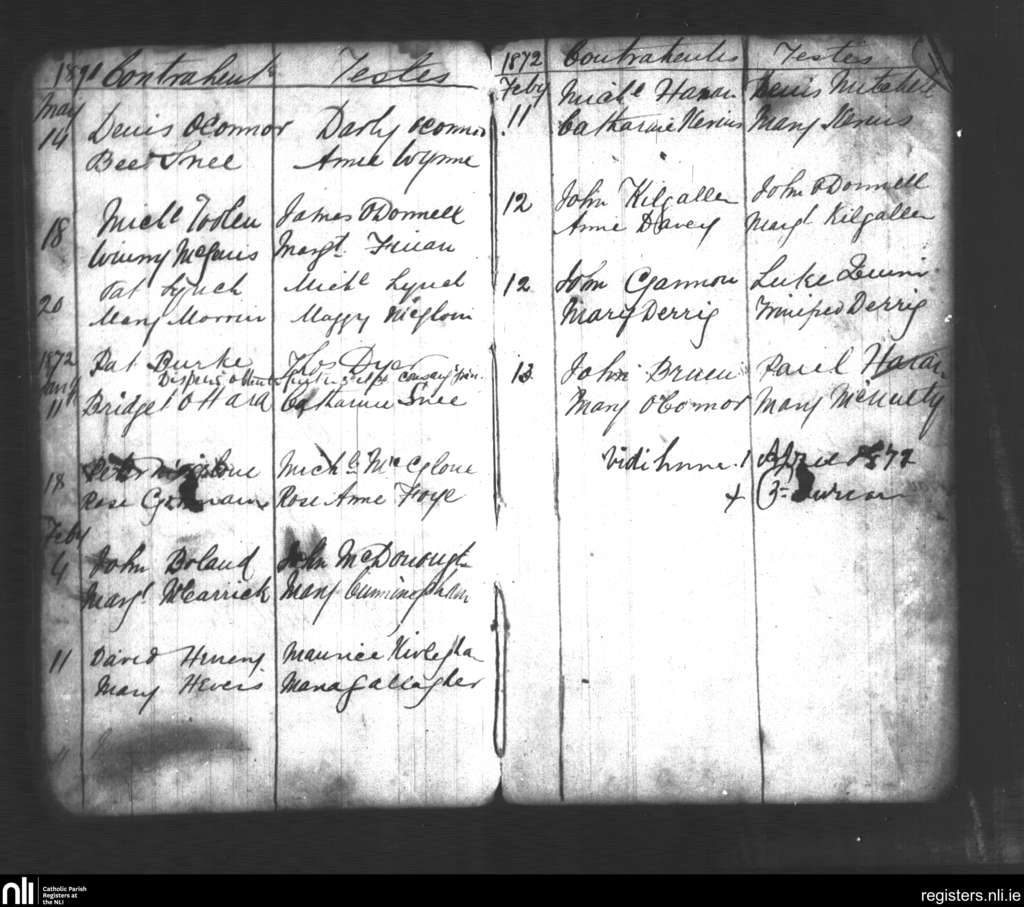 Killoran; County of Sligo; Diocese of Achonry. Marriages, May 1871 to Feb. 1872