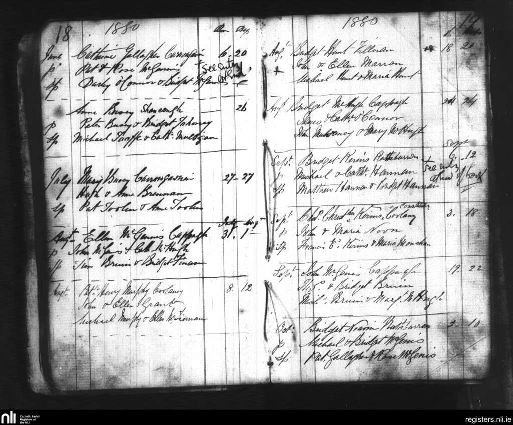 Killoran; County of Sligo; Diocese of Achonry. Baptisms, June 1880 to Oct. 1880