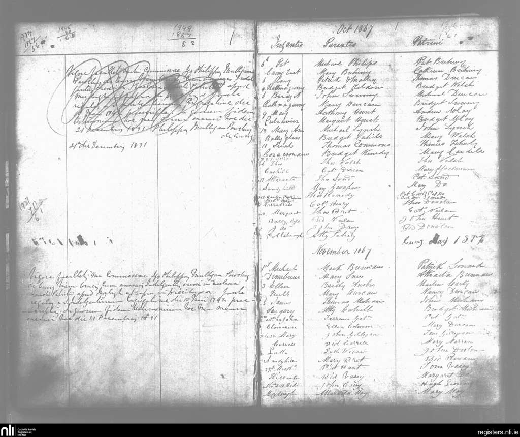 Curry; County of Sligo; Diocese of Achonry. Baptisms, Oct. 1867 to Nov. 1867