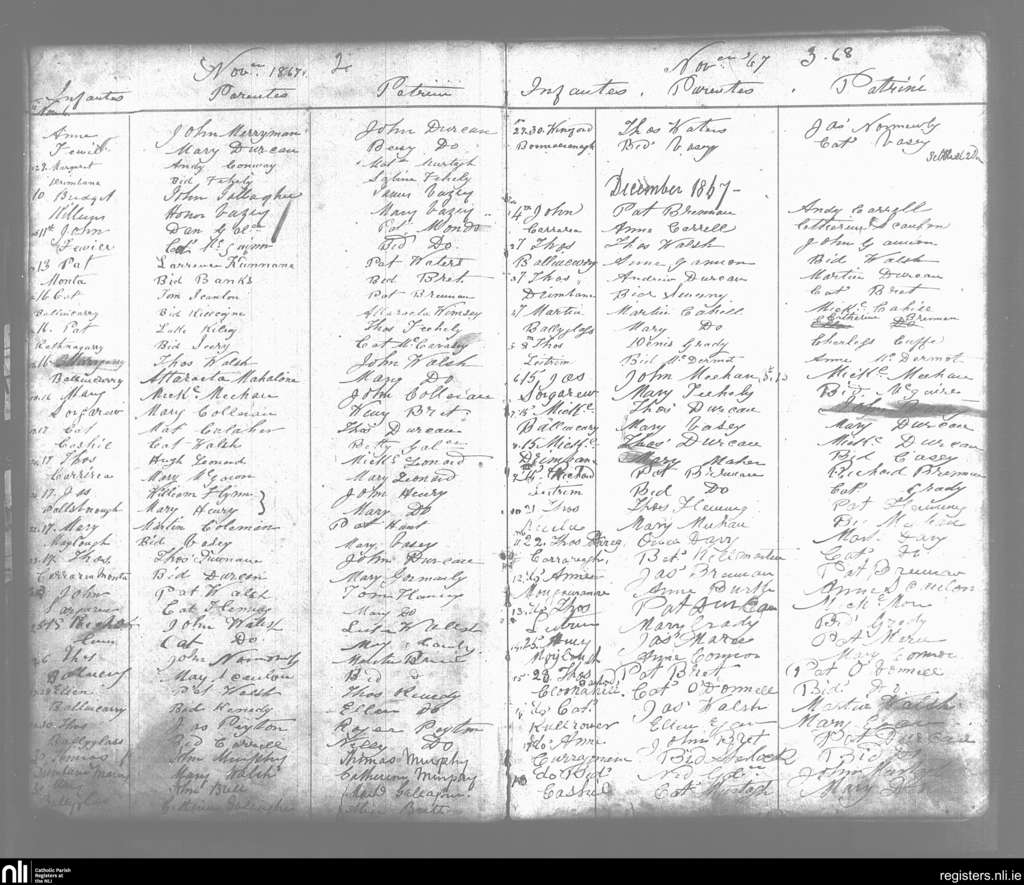 Curry; County of Sligo; Diocese of Achonry. Baptisms, Nov. 1867 to Dec. 1867