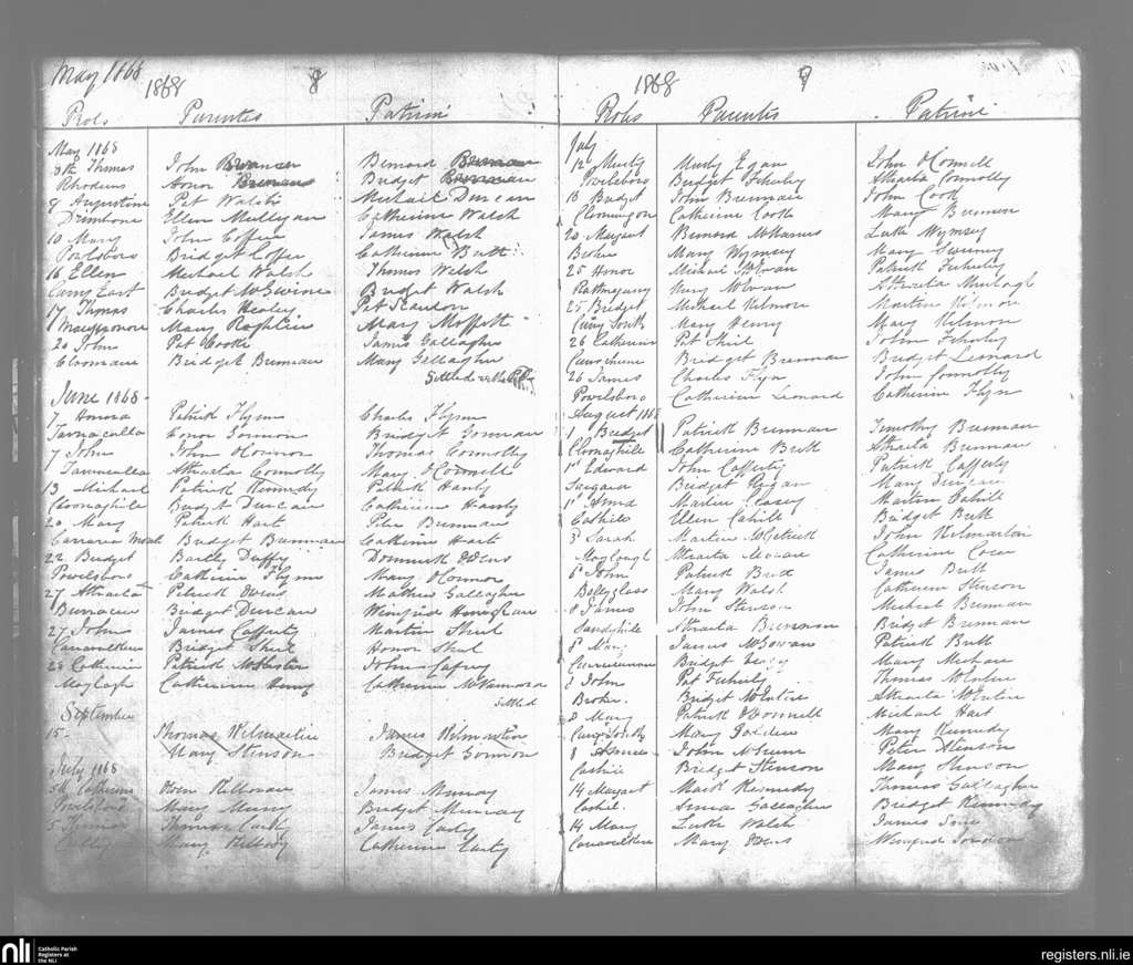 Curry; County of Sligo; Diocese of Achonry. Baptisms, May 1868 to Sep. 1868
