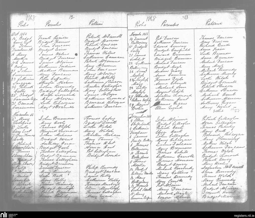 Curry; County of Sligo; Diocese of Achonry. Baptisms, Oct. 1868 to Dec. 1868