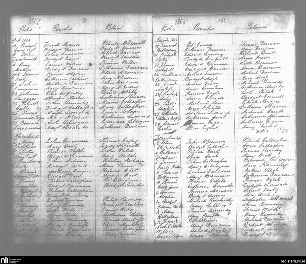Curry; County of Sligo; Diocese of Achonry. Baptisms, Oct. 1868 to Dec. 1868