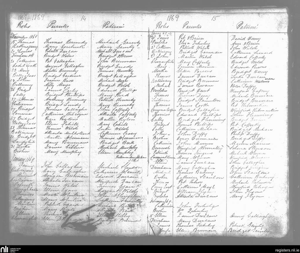 Curry; County of Sligo; Diocese of Achonry. Baptisms, Dec. 1868 to Feb. 1869