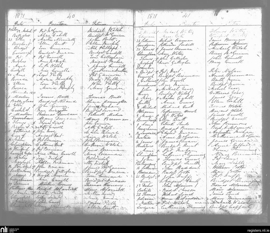Curry; County of Sligo; Diocese of Achonry. Baptisms, Oct. 1871 to Dec. 1871