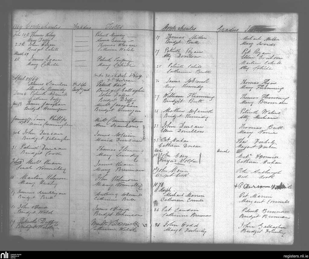 Curry; County of Sligo; Diocese of Achonry. Marriages, Feb. 1869 to Mar. 1870