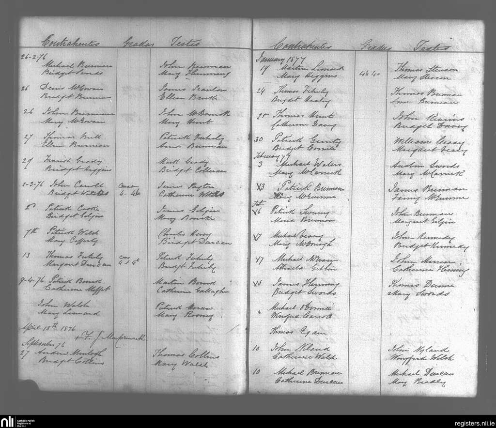 Curry; County of Sligo; Diocese of Achonry. Marriages, Feb. 1876 to Feb. 1877