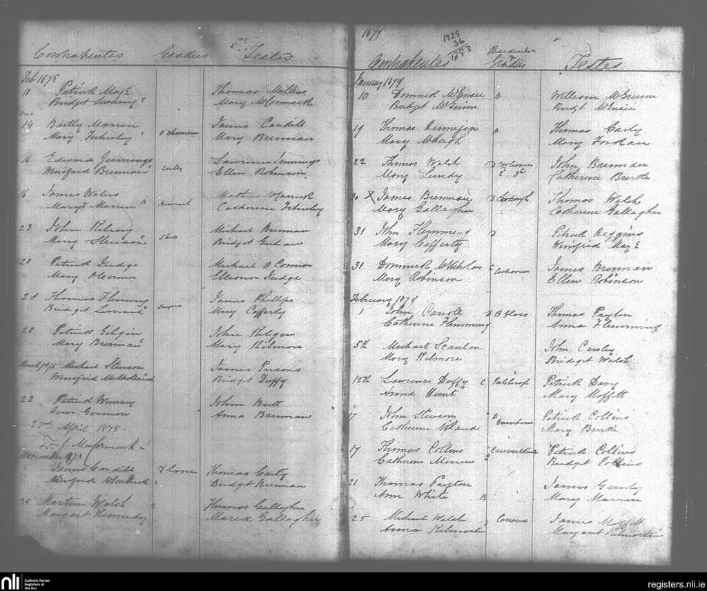 Curry; County of Sligo; Diocese of Achonry. Marriages, Feb. 1878 to Feb. 1879