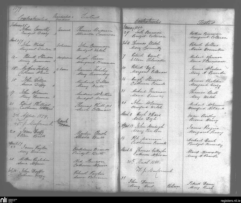 Curry; County of Sligo; Diocese of Achonry. Marriages, Feb. 1879 to Mar. 1880
