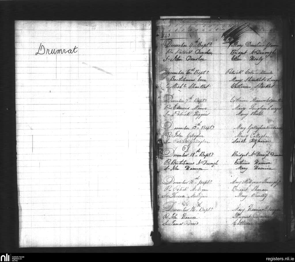 Drumrat; County of Sligo; Diocese of Achonry. Baptisms, Dec. 1843