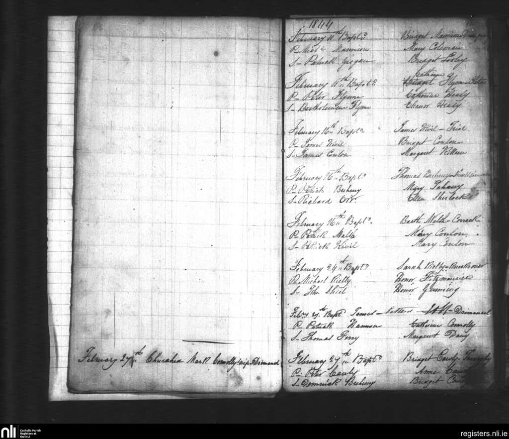 Drumrat; County of Sligo; Diocese of Achonry. Baptisms, Feb. 1844