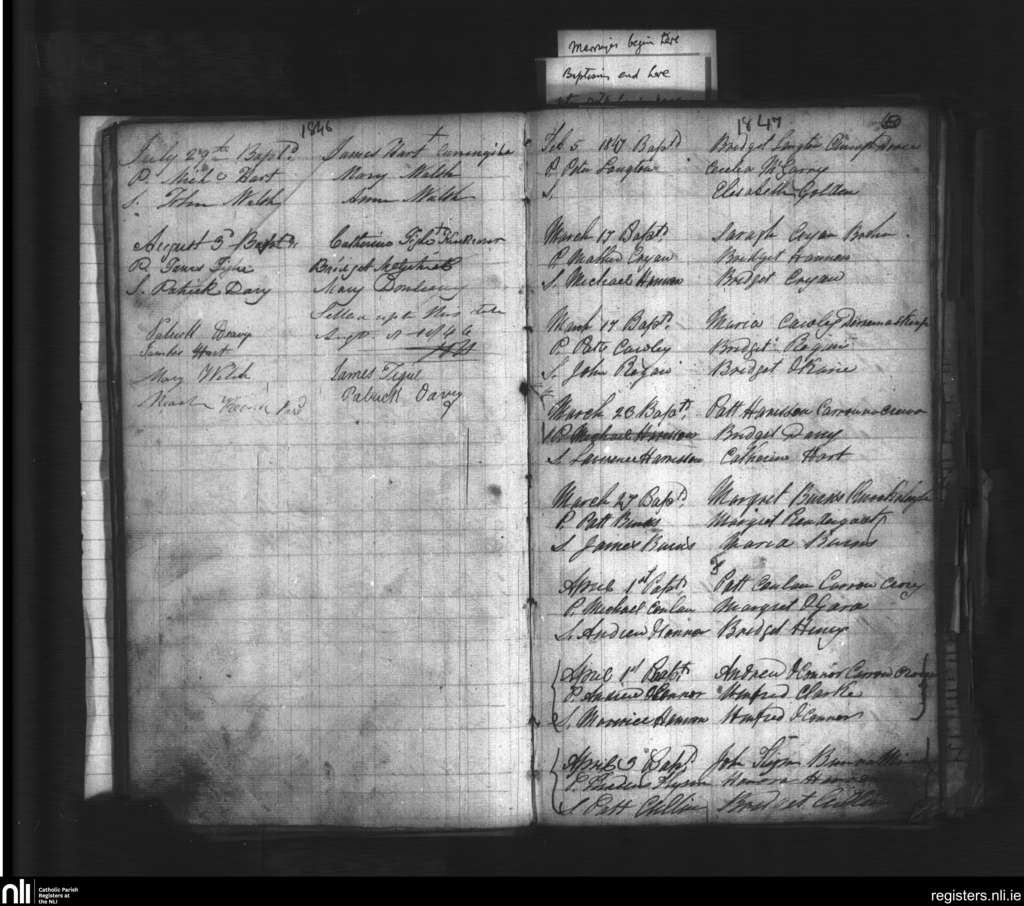 Drumrat; County of Sligo; Diocese of Achonry. Baptisms, July 1846 to Apr. 1847