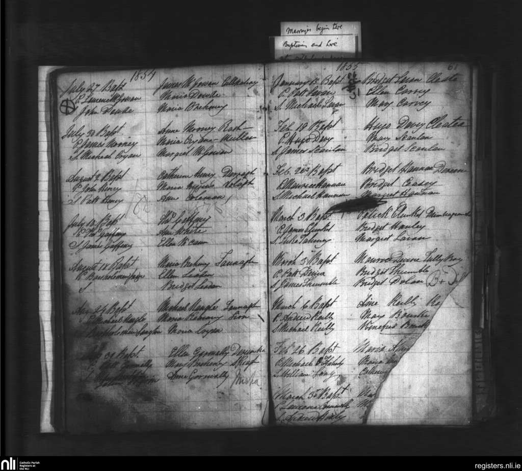 Drumrat; County of Sligo; Diocese of Achonry. Baptisms, July 1854 to Mar. 1855