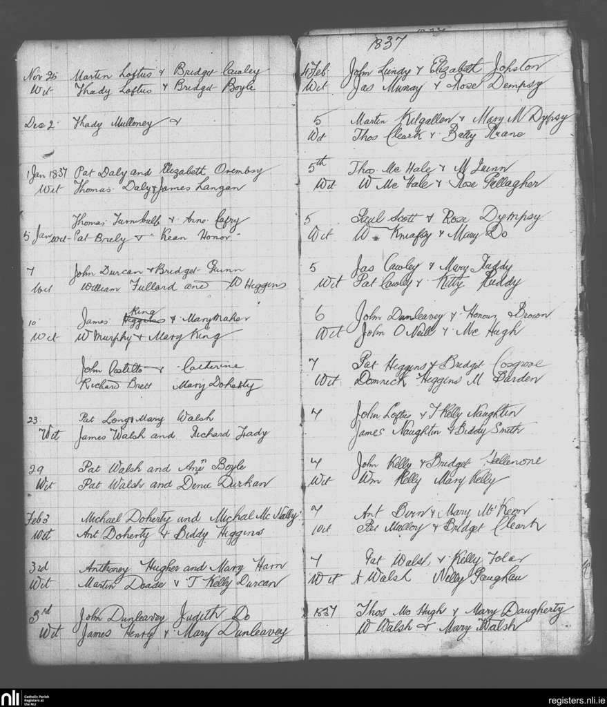 Toomore; County of Mayo; Diocese of Achonry. Marriages, Nov. 1836 to Feb. 1837