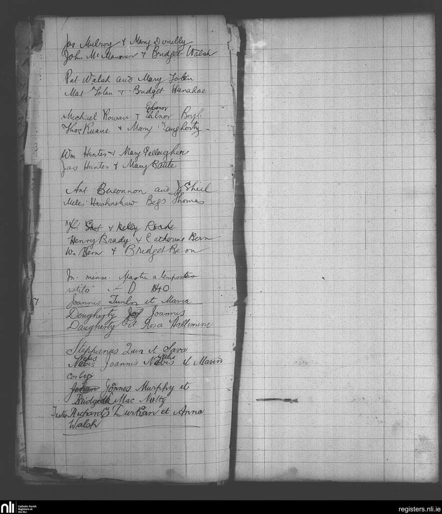 Toomore; County of Mayo; Diocese of Achonry. Marriages, Mar. 1840