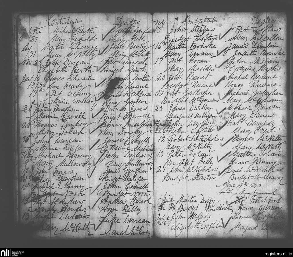 Toomore; County of Mayo; Diocese of Achonry. Marriages, July 1872 to July 1873