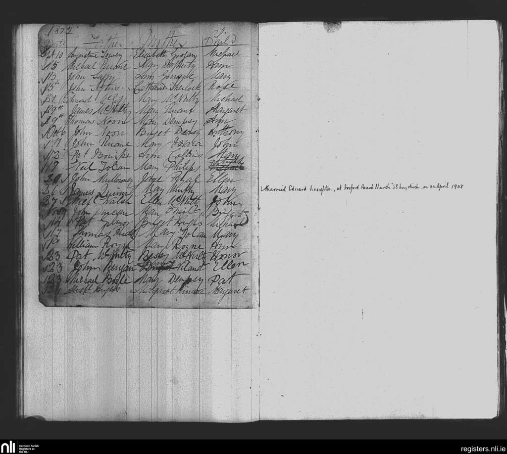 Toomore; County of Mayo; Diocese of Achonry. Baptisms, Marriages, Sep. 1872 to Apr. 1908