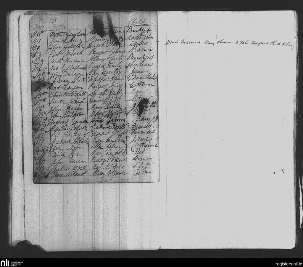 Toomore; County of Mayo; Diocese of Achonry. Baptisms, Jan. 1873 to Mar. 1873