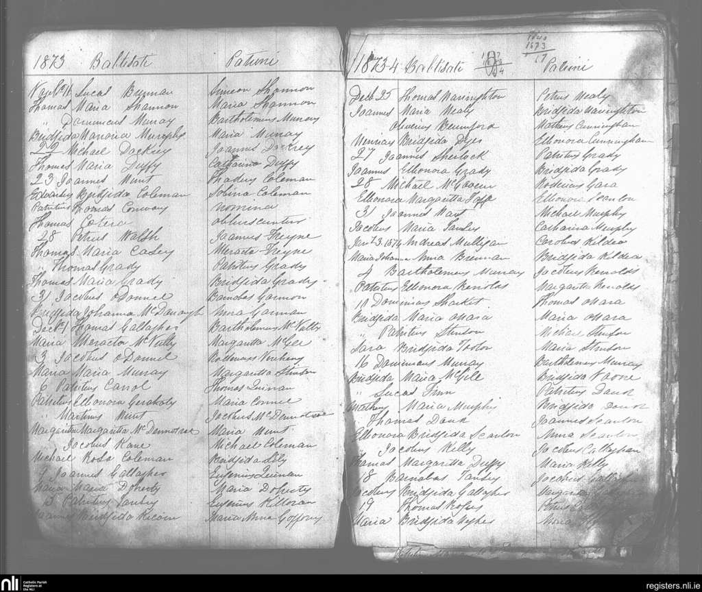 Kilfree and Killaraght; County of Sligo; Diocese of Achonry. Baptisms, Nov. 1873 to Jan. 1874