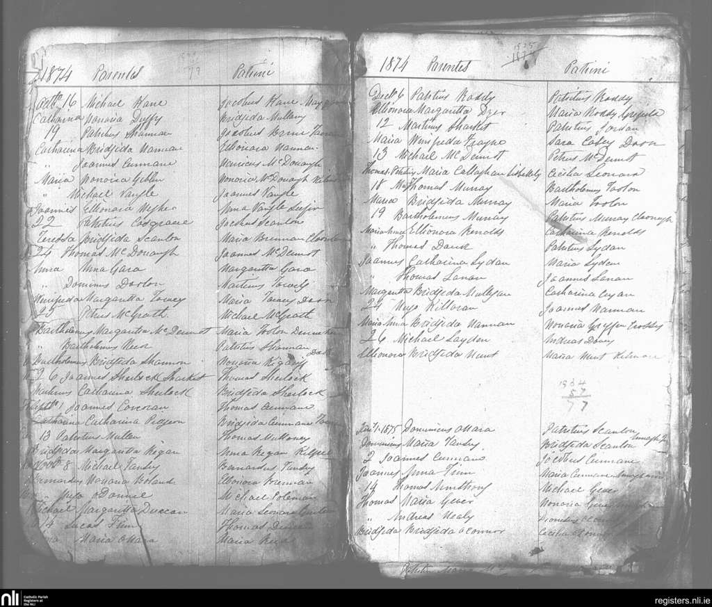 Kilfree and Killaraght; County of Sligo; Diocese of Achonry. Baptisms, Oct. 1874 to Jan. 1875