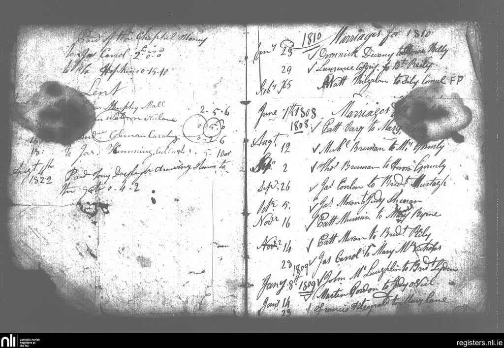 Swineford; County of Mayo; Diocese of Achonry. Marriages, June 1808 to Jan. 1809