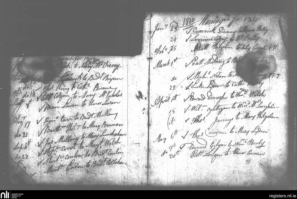 Swineford; County of Mayo; Diocese of Achonry. Marriages, Jan. 1809 to May 1810